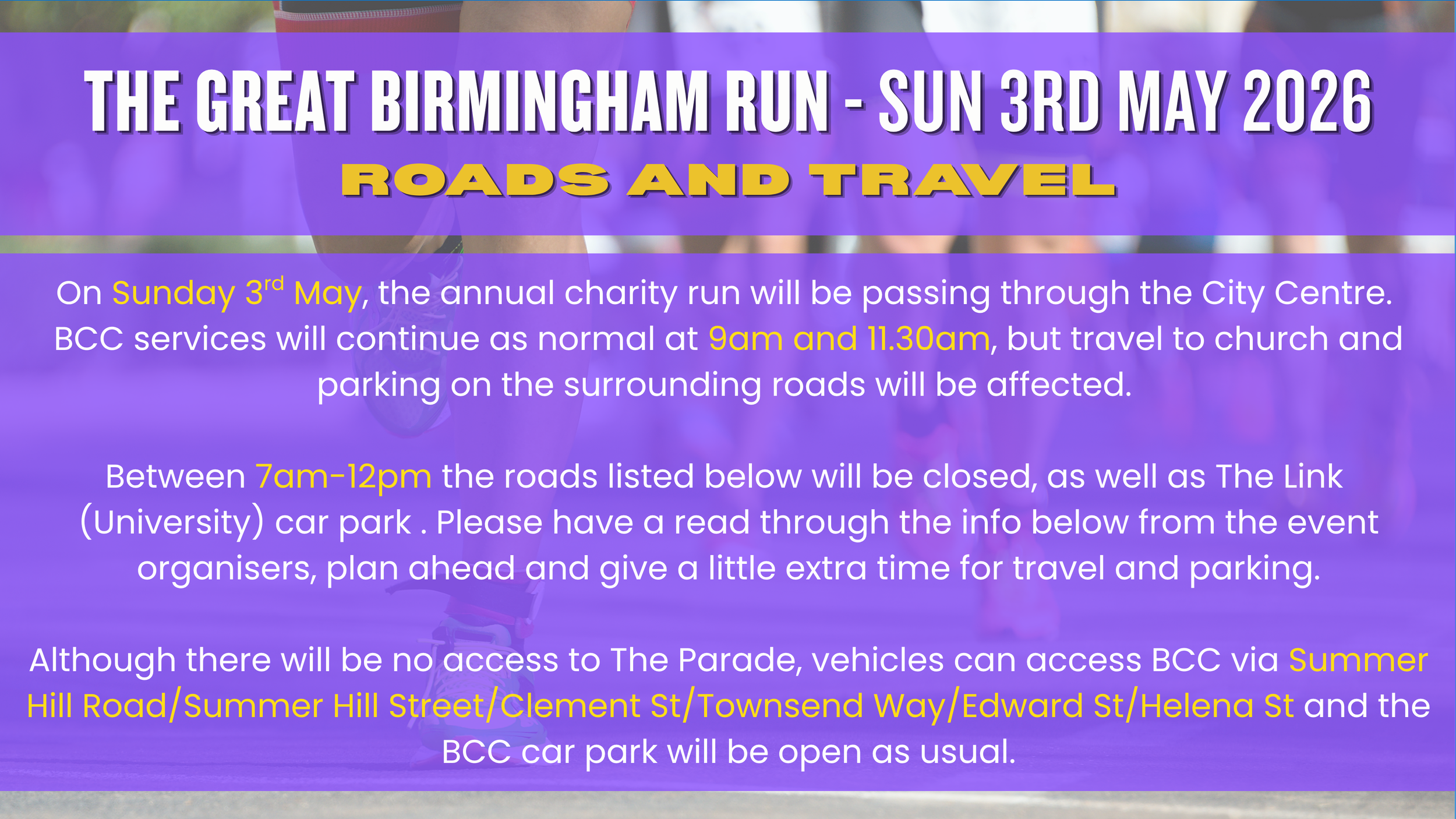 Our car park is managed by a third-party company called Parking Eye. Free parking is available at BCC during our Sunday services until 3pm, however restrictions do apply outside of these times which may result in fines being issued by Parking Eye for unauthorised parking. If you are visiting BCC outside of our Sunday services, please ensure that you enter your vehicle registration with Parking Eye via the registration points located at our Info Point and Office Reception. Please note that BCC receives no funding from fines issued by Parking Eye. For further information please contact the BCC Office on 0121 236 2997 or email admin@bcc.life. Thank you.